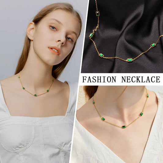 Green Cubic Zirconia Necklace for Women, CZ Stone Charm Neck Jewelry
