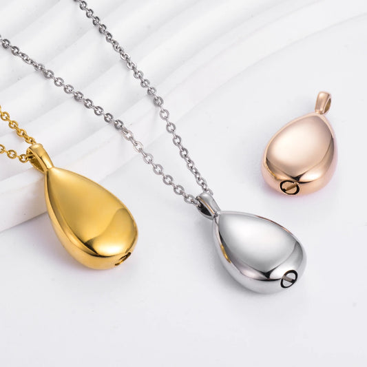 Stainless Steel Waterdrop Cremation Urn Necklace Pendant for Ashes Holder 3 Colors with Sanke Chain